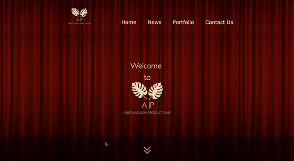 Then I decided to add a subtle CTA in the form of arrows inviting the viewer to click to scroll down, which would also lend an effect of the curtain rising. Unfortunately, management of the speed will have to wait until JS review.