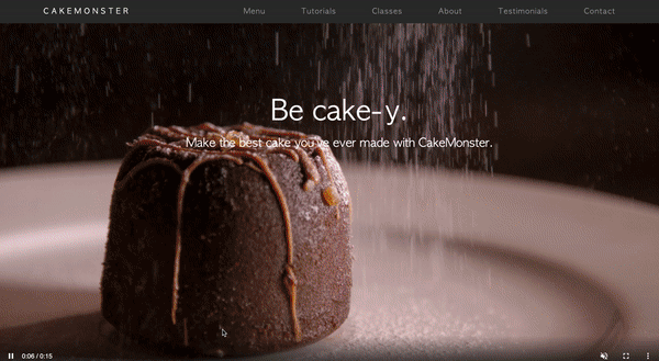 Once I’ve added those effects, I’ll go ahead and build out the rest of CakeMonster’s pages, as the corresponding pages in the original site have some really cool effects (fancy sliders, headers that drop down on load, text that swaps out on click, images that expand on scroll, etc.) that I want to play around with again.