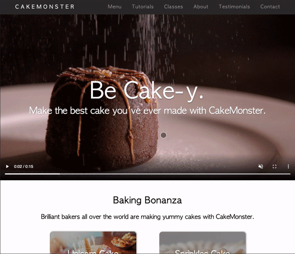 I started by reviewing freeCodeCamp’s basic Javascript course and referring to the notes I made back when I did it the first time a couple of years ago. Once I had the basics refreshed in my mind, I started adding Javascript to CakeMonster to bring it into alignment with the inspiration site.